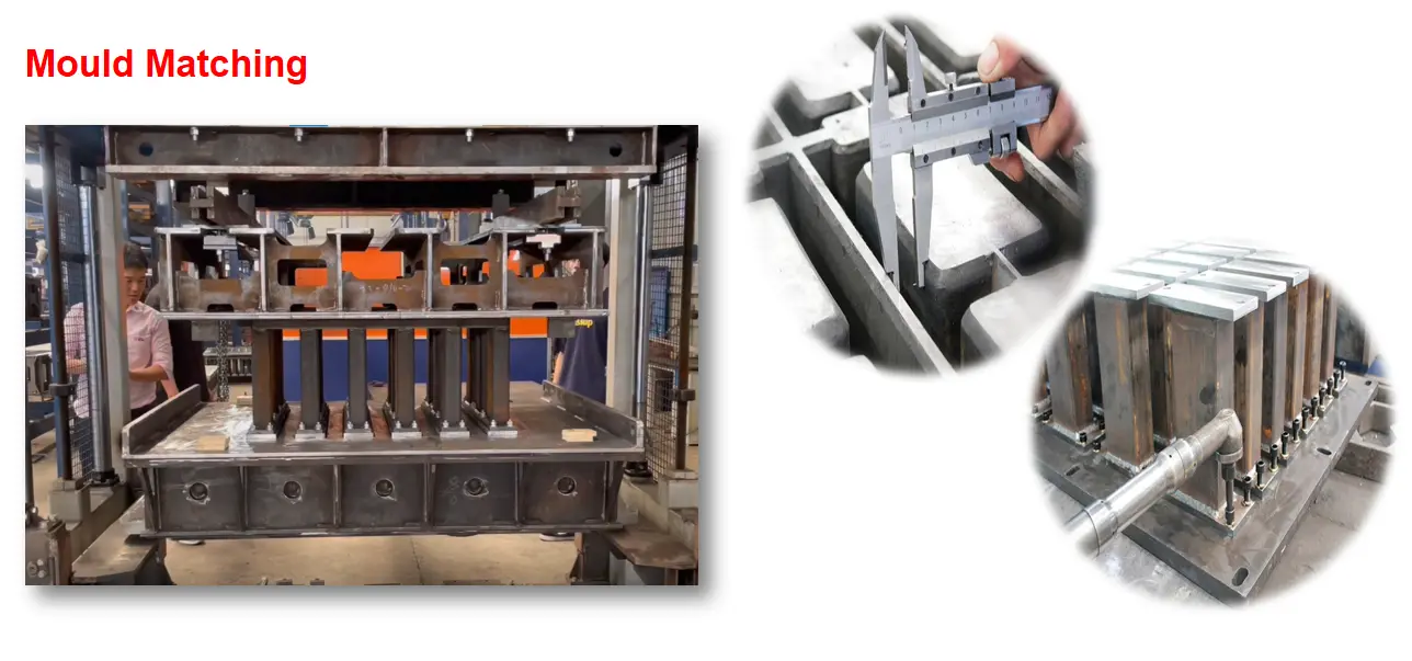 2. Brú: Cuir brú ar an múnla trí chóras brú an mheaisín bloc chun an t-ábhar a bhrú agus a dhlúth sa chuas múnla. Faoin brú, tá na cáithníní san ábhar gar dá chéile, tá an t-aer eisiata, agus déantar brící le neart agus cruth áirithe a fhoirmiú de réir a chéile.